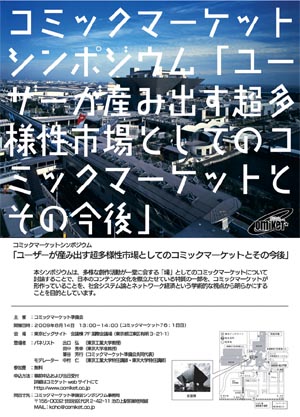 本シンポジウムでは、コミックマーケットが、多様な創作活動が一堂に会する「場」としての市場的機能が、コンテンツにおける創造・流通と消費の各プロセスにどう関わっているか、また社会にどのような影響を与え、関わっているかを、社会システム論とネットワーク経済という学術的な視点から明らかにしようとするものです。